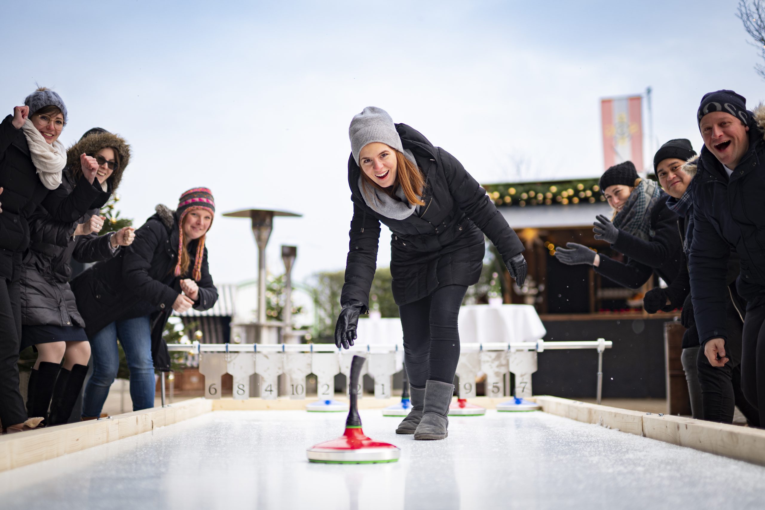 Gruppen können im Hilton Vienna Danube Waterfront die Adventszeit mit einer Partie Curling zelebrieren. Für kleine Gruppen und nach Voranmeldung bietet das Hotel exklusive Curlingangebote auf der hauseigenen Bahn an. Punsch zum Aufwärmen und ein gemütliches Dinner in der Waterfront Kitchen sind dabei natürlich inkludiert.