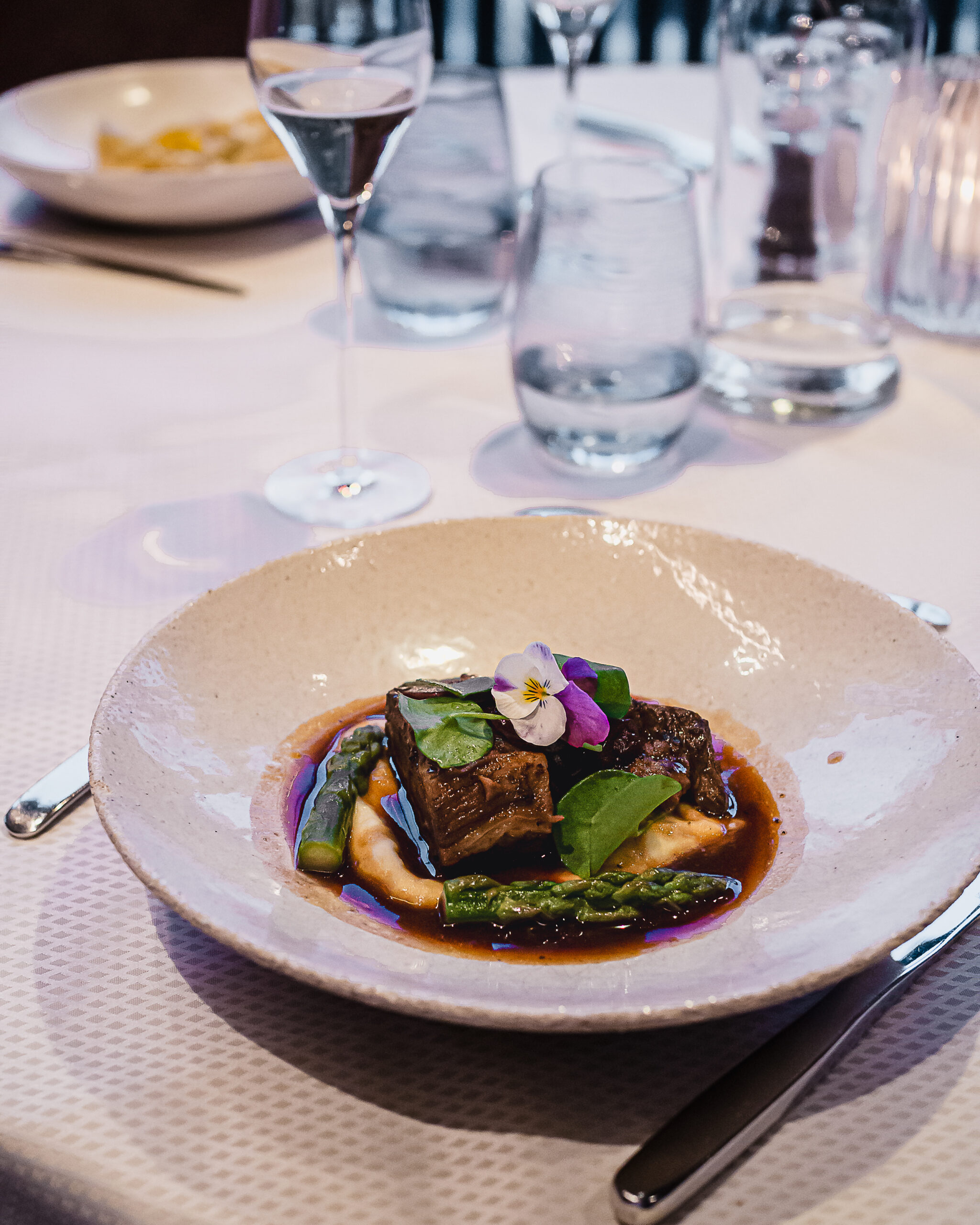 Die Speisekarte liest sich wie eine kulinarische Expedition durch Aromen – konfierter Wels begleitet mit fermentierten Rotkrautsaft, Ofensellerie und schwarzen Linsen oder das Short Rib vom Leoganger Rind mit Schwarzbrotmiso, Kartoffeln, Kräuter, grünen Spargel und rote Zwiebel. Jeder Bissen ist ein Erlebnis, der die Sinne verwöhnt.