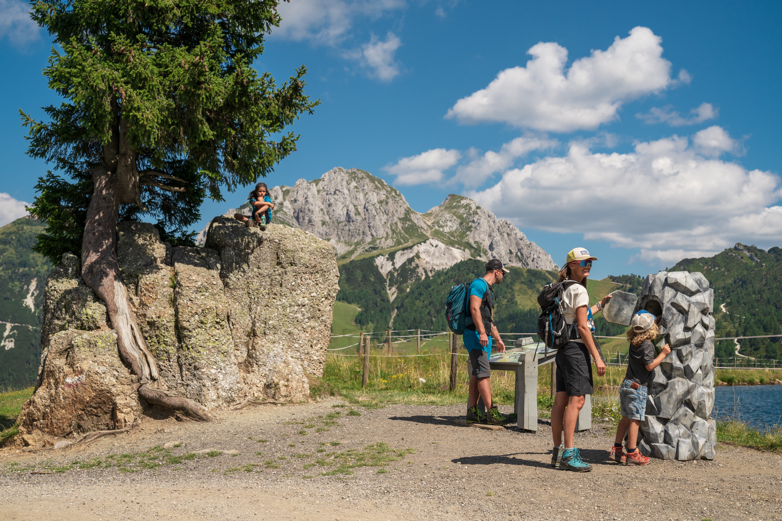 Familien, denen die Nachtruhe heilig ist, werden auch bei Tagestouren fündig, schließlich sind der Berg und seine Umgebung für familienfreundliche Routen bekannt. Unter dem Gipfelkreuz gibt es einen Bergspielplatz, den „Aqua Trail“ Bergwasser und die zwei Kilometer lange Sommerrodelbahn „Pendolino“. Auf der Madritschen-Tour gilt es für die Jüngsten so knifflige wie kreative Aufgaben rund um das Steinvolk der Madritschen zu lösen. Lehrreich und ein großer Spaß. Unbedingt vormerken!