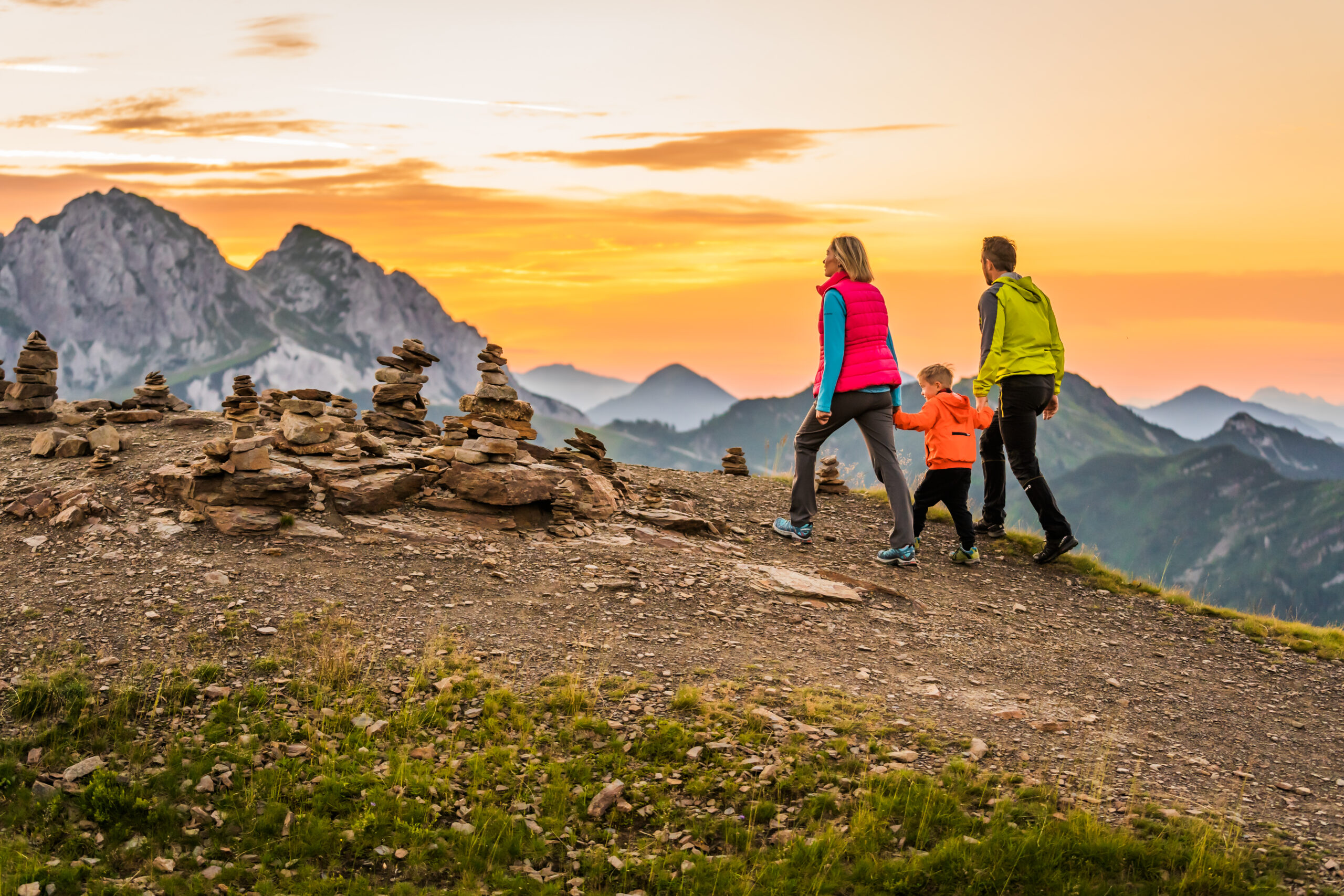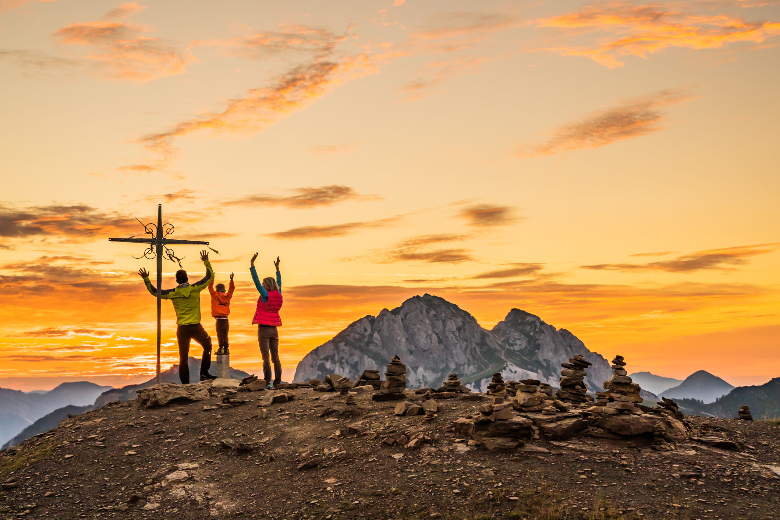 Marmeladenglas-Momente mit der ganzen Familie sind bei einer Sonnenaufgangstour auf den Madritschenkopf garantiert: Noch im Dunkeln machen sich große und kleine BergfexInnen auf den Weg ins Abenteuer. Der Wecker hat um 4 Uhr geklingelt, die Aufregung steigt mit jedem Höhenmeter. Um ohne Zeitdruck und pünktlich zum Sonnenaufgang um 6.30 Uhr auf 1.909 Metern angekommen zu sein, empfiehlt es sich, 1,5 Stunden einzuplanen – kleine Pausen, Vernichtung des (Gipfel-) Proviants auf dem Weg und Momente des Innehaltens und Staunens eingerechnet.