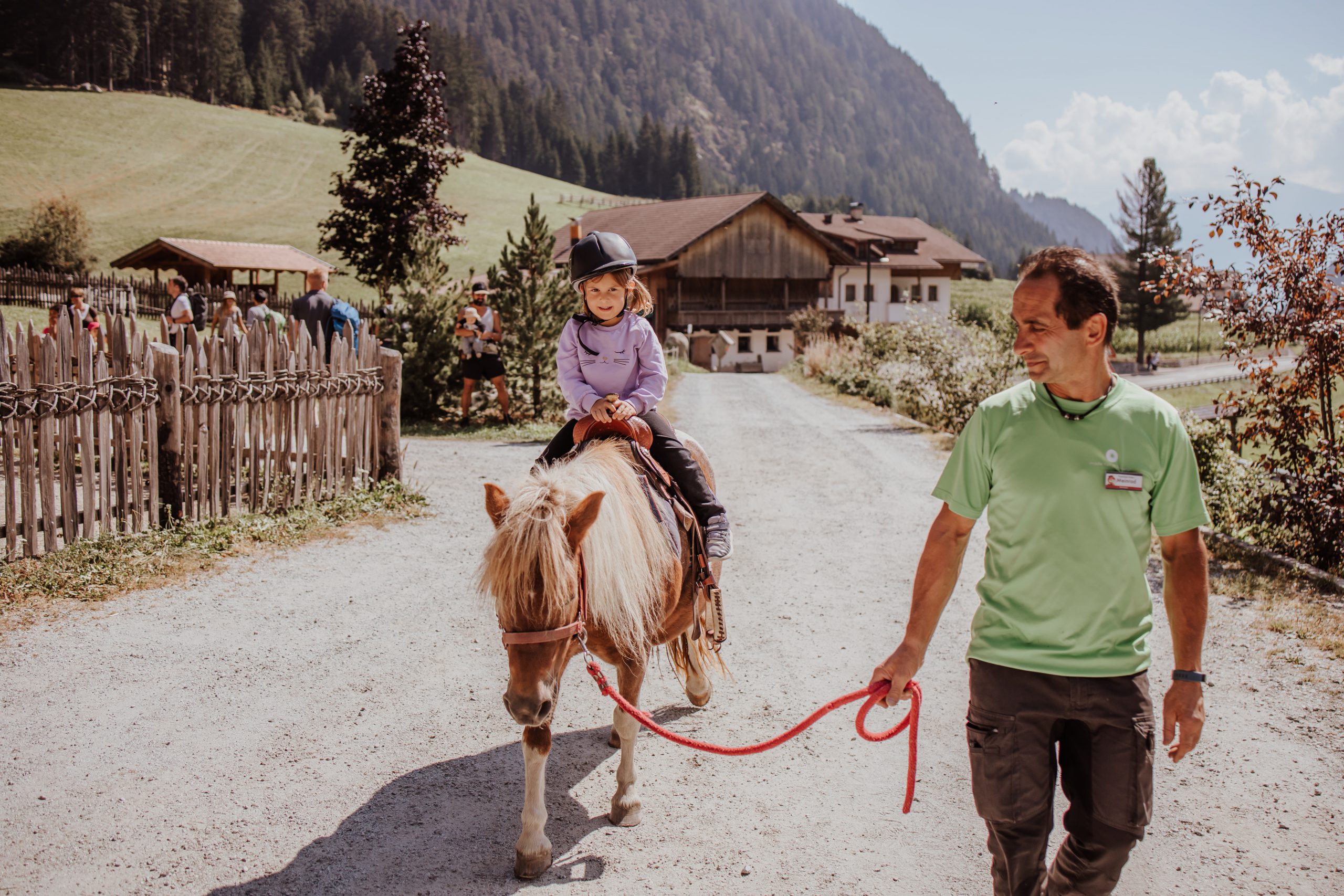 Einen Kilometer vom Familienhotel Huber entfernt können Gäste des Hauses hier jederzeit vorbeischauen. Das Beste: Besucher bestaunen Ziegen, Alpakas und Co. vor Ort nicht nur, sondern können am Hof auch mit anpacken. Etwa beim Füttern, Ponys striegeln oder der Stallarbeit. Mehr tierische Abenteuer gehen nicht. www.hotelhuber.com / www.familienhotels.com