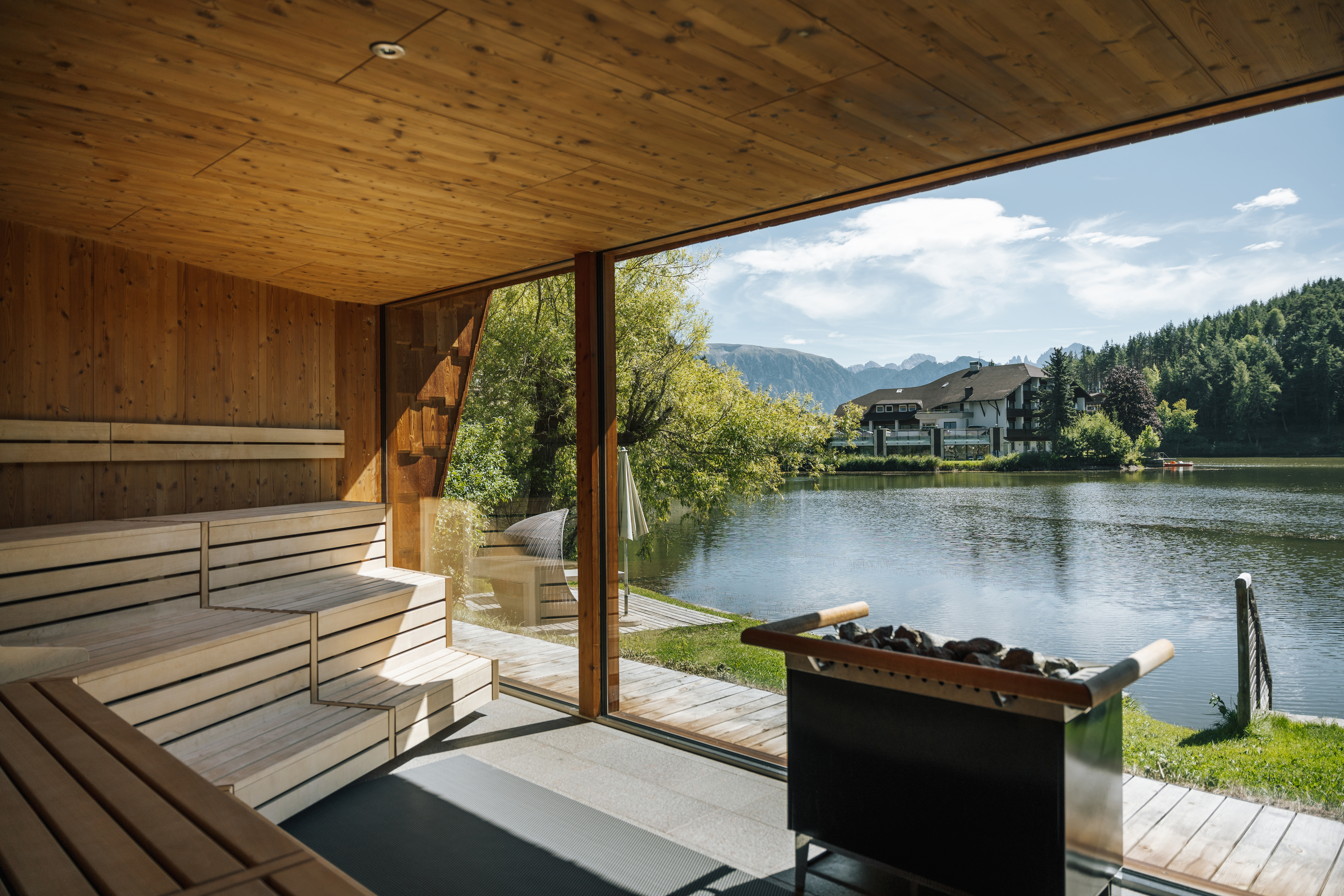 Actionfans kommen beim Stand-up-Paddling, Kajak-, Tretboot- und Ruderbootfahren oder beim Schwimmen in einem der saubersten Badeseen Italiens auf ihre Kosten. Wer es lieber ruhiger angeht, setzt auf die Wirkung des weichen Seewassers, das auch in der hauseigenen Naturkosmetiklinie „BergSea“ enthalten ist. Auch Genießer finden im Weihrerhof den Bezug zum Wasser: Die kleine Insel im Wolfsgrubner See dient immer wieder als besonderer Frühstücksplatz.