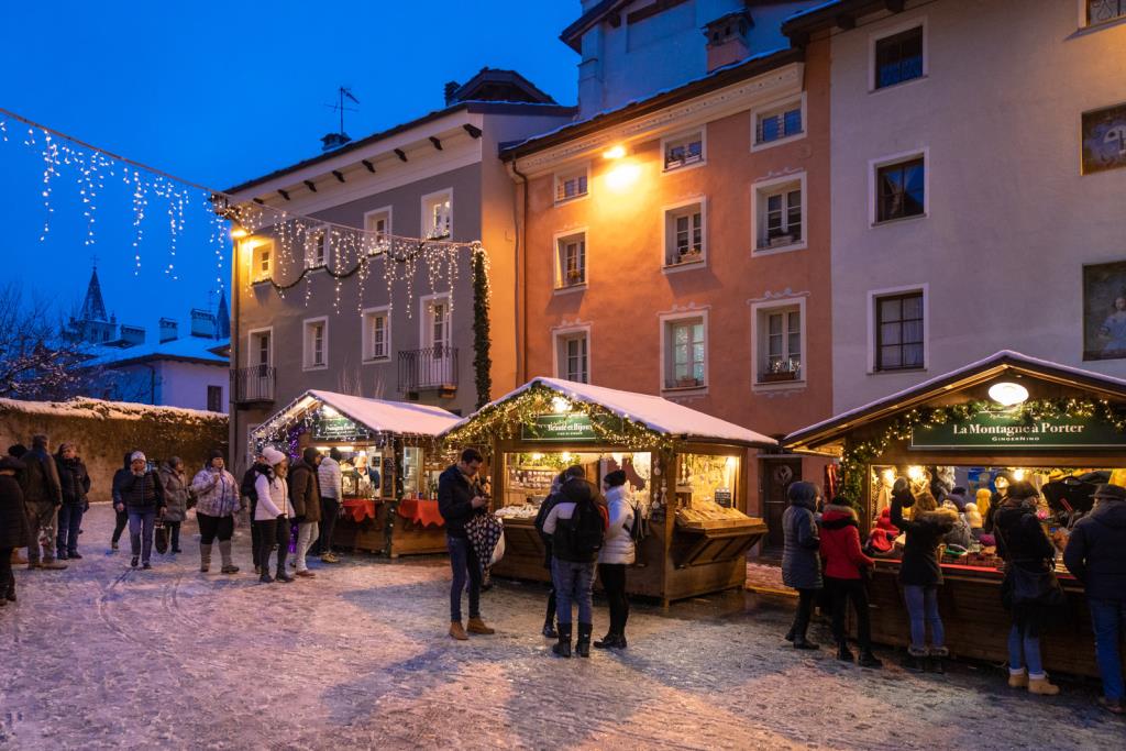 Bei einem gemütlichen Bummel durch Aostas weihnachtlich geschmückte Gassen können an den Ständen des Weihnachtsmarktes regionale Spezialitäten und Weine, Handwerkskunst, historische Gegenstände und andere Geschenkideen für die Feiertage erworben werden. Das Besondere: die historische Kulisse und der multikulturelle Einfluss machen die Märkte zu einem romantischen Erlebnis.